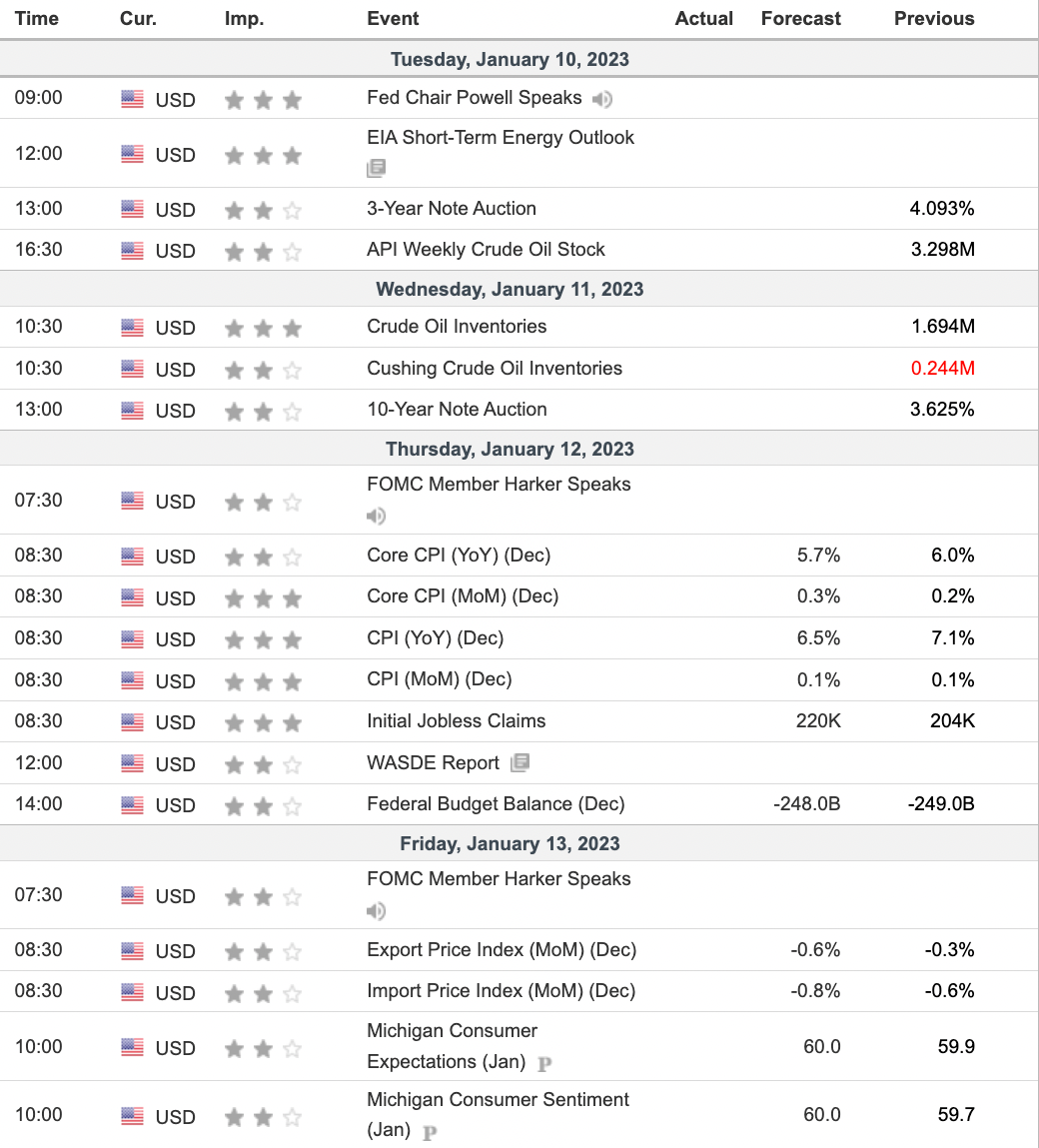 Overall we see that this is thin week in terms of economic data, but Thursday's CPI is going to carry major volatility as it will help clear up expectations for the Fed's rate hike path going forward.