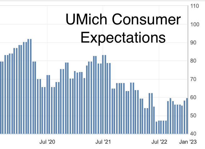 Year over year CPI has finally turned the corner after reaching an over 9% peak in the summer, and in fact seems to be accelerating to the downside in the last two months.