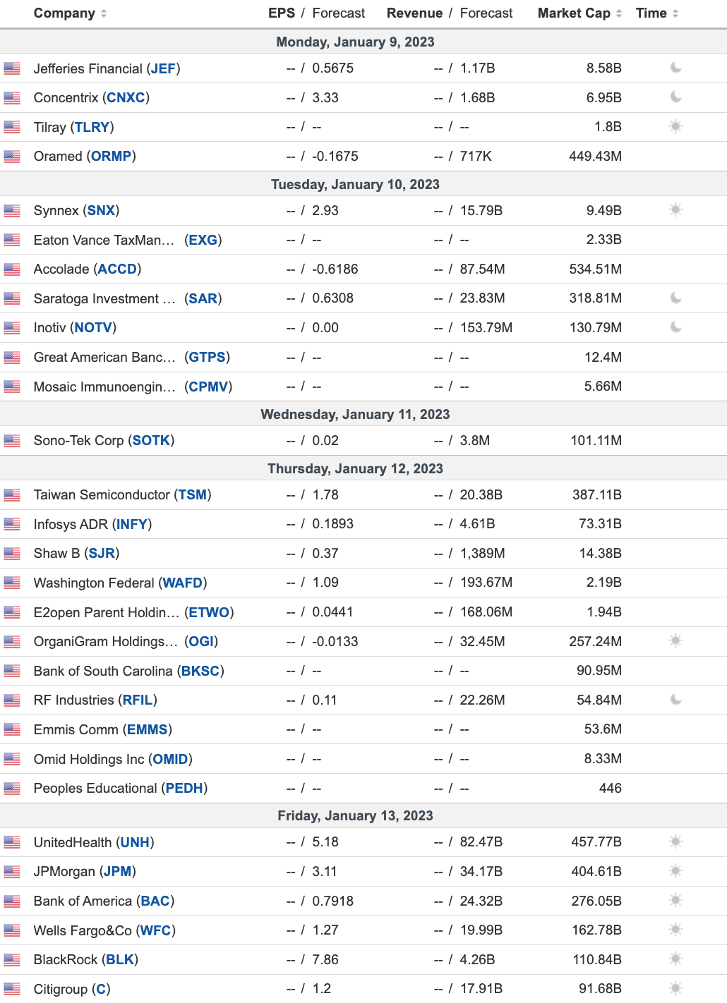 Here is the full rundown of earnings expectations:
