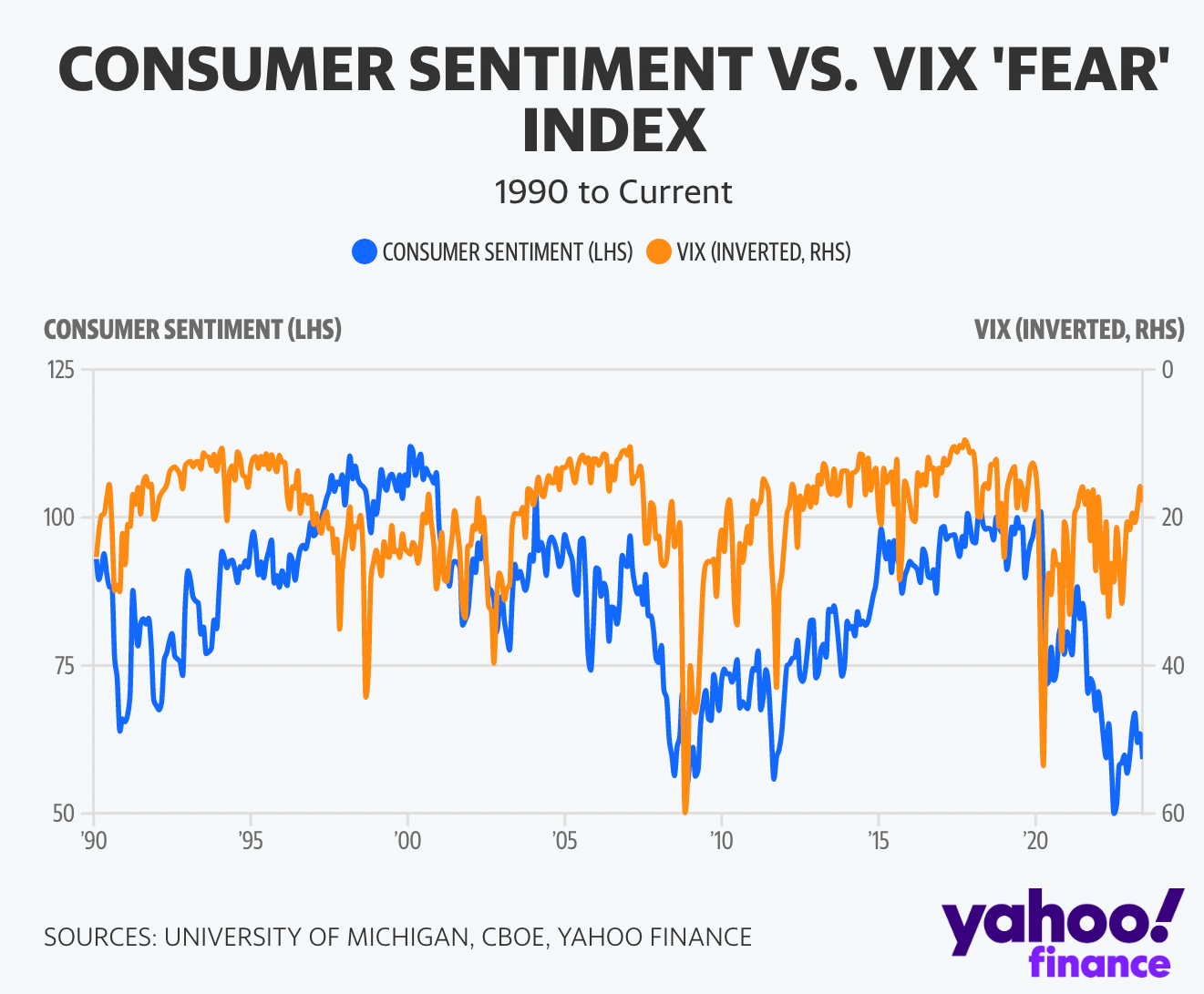 Fear down, sentiment up. Consumer sentiment has begun its rebound off lows not even seen in the Great Financial Crisis of 2008, all the while the VIX index gets crushed towards its natural resting place during bull markets. This wide gap between VIX (inverted) and Consumer Sentiment is extremely rare, and usually short-lived, meaning one will have to break towards the other relativly soon. Considering all aspects of the economy in the present moment, we are leaning towards a sharp move higher in consumer sentiment, with fear remaining low, but ofcourse a catalyst will be needed to cause any major shift there.