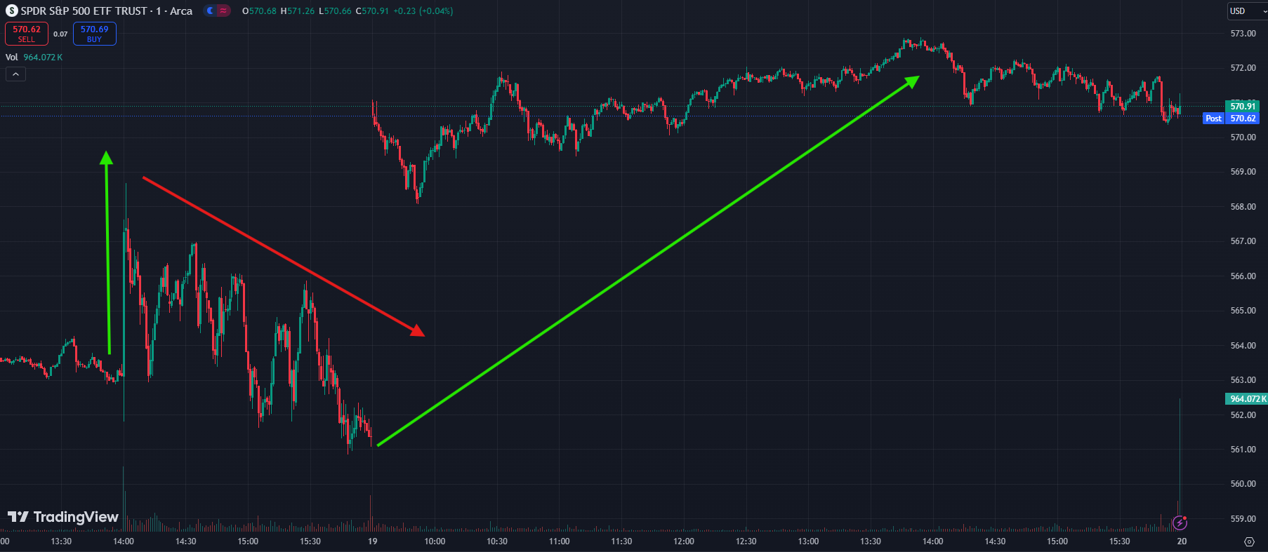 All in, the market took this mix bag of sentiments as a negative, selling off into close yesterday... just to boom higher today: