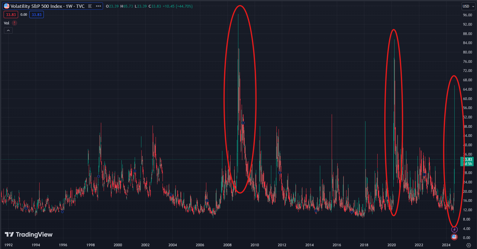 The S&P 500 volatility index, the VIX, printed its third highest point in history at the open, only behind the heights of both the Great Financial Crisis and the Covid Panic.
