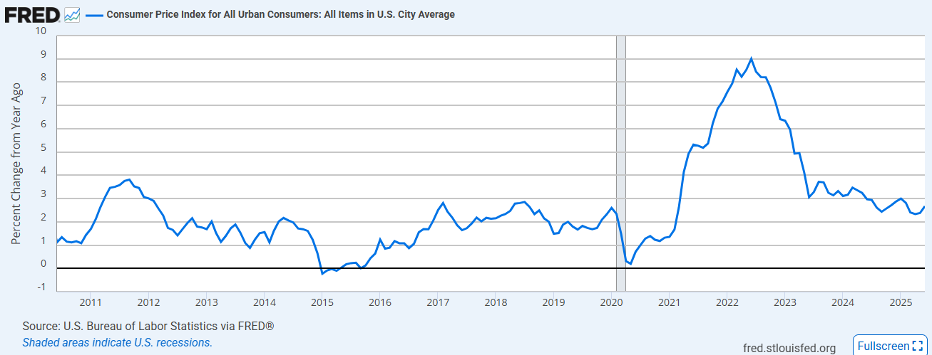 While the full impacts of tariffs are yet to be seen, inflation has faded out of the news cycle, and while not exactly at the Fed's 2% target, it's been hanging around the 2.25-2.75% range for nearly a year now... not notable.