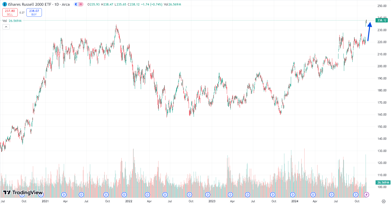 All three major indexes set all time highs, posting their best one week gains of the entire year. More impressive than that, though, was the Russell 2000 small cap index, breaking out of its nearly three year slump to finally set a new record, ending the week a staggering 9% higher.